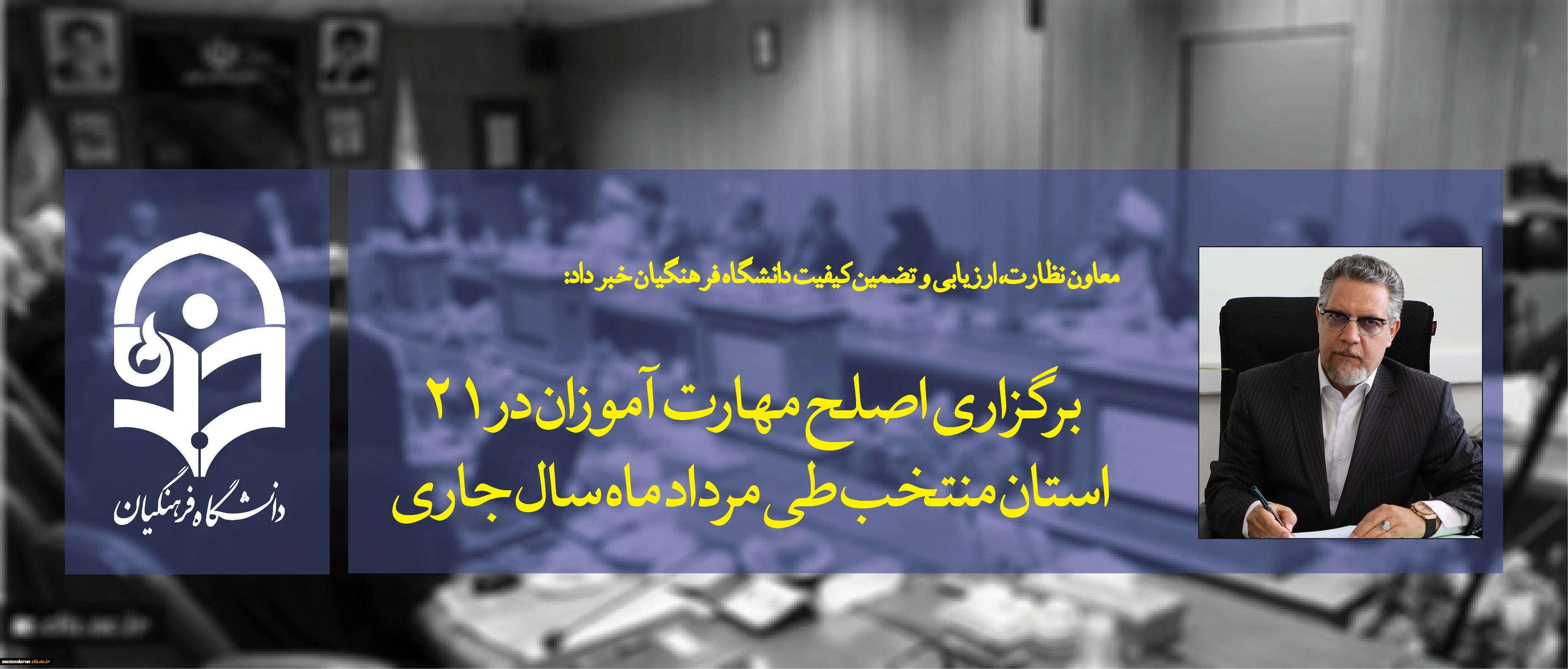معاون نظارت، ارزیابی و تضمین کیفیت دانشگاه فرهنگیان خبر داد: برگزاری اصلح مهارت آموزان در 21 استان منتخب طی مرداد ماه سال جاری