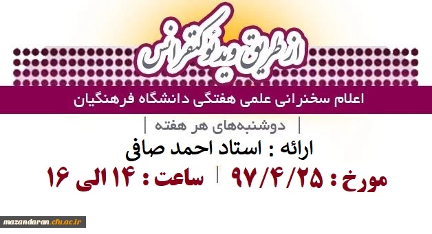 قابل توجه کلیه اعضای هیئت علمی، اساتید و دانشجویان: اعلام زمان برگزاری سخنرانی علمی هفتگی دانشگاه از طریق ویدئوکنفرانس