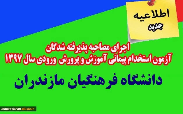 در پردیس دکتر شریعتی ساری برگزار می گردد: اجرای مصاحبه پذیرفته شدگان (خواهران) آزمون استخدام پیمانی آموزش و پرورش ورودی سال 1397