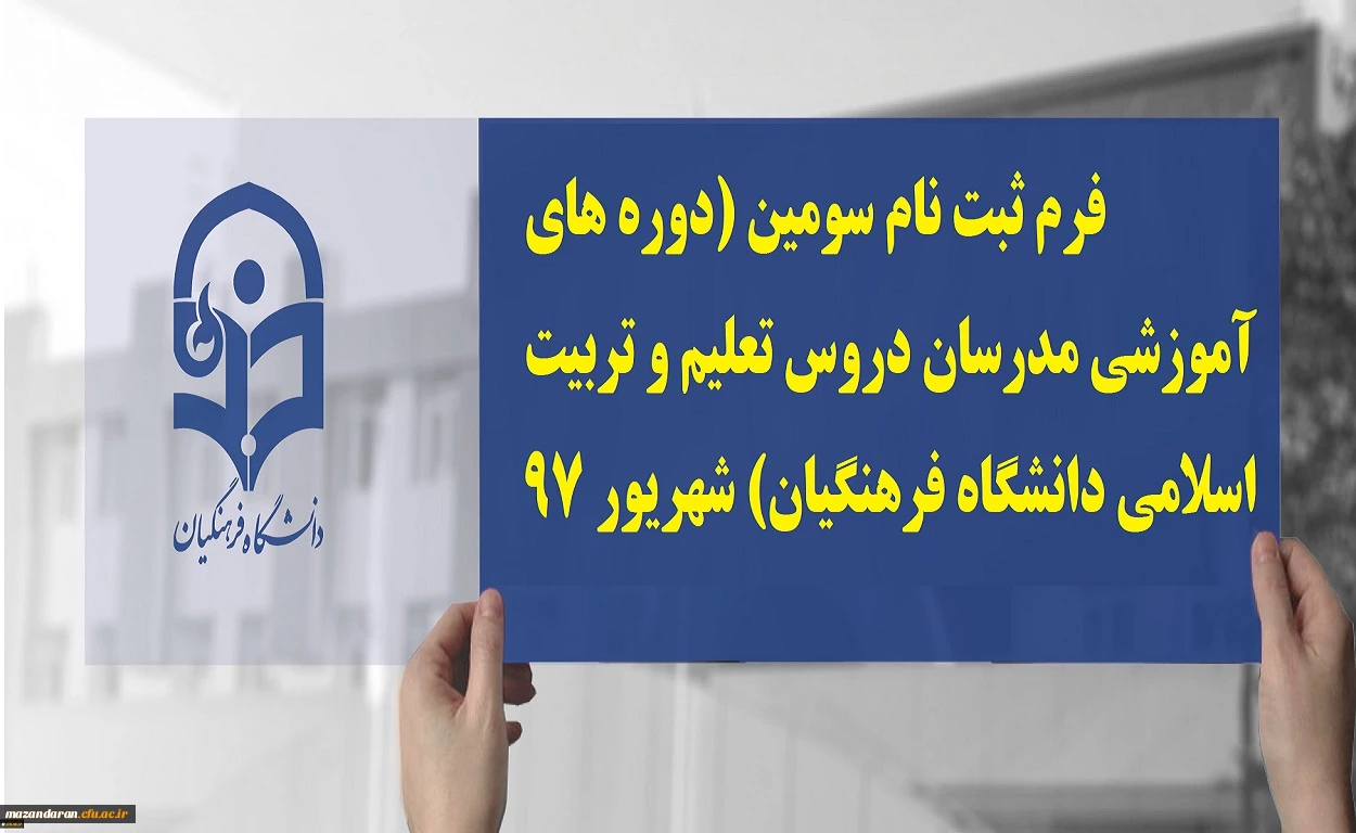 فرم ثبت نام سومین (دوره های آموزشی مدرسان دروس تعلیم و تربیت اسلامی دانشگاه فرهنگیان) شهریور 97
