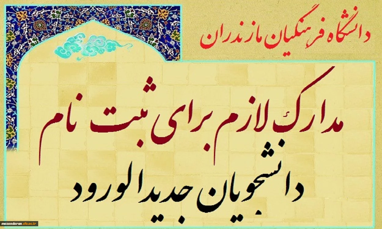 مدارک لازم جهت ثبت نام بصورت حضوری دانشجویان جدیدالورود دانشگاه فرهنگیان مازندران