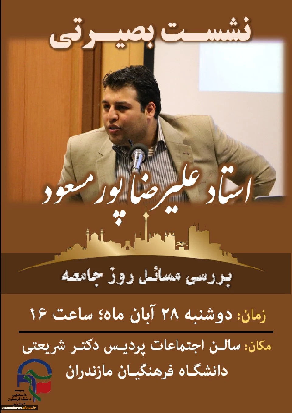 نشست بصیرتی با عنوان (بررسی مسائل روز جامعه) در پردیس دکتر شریعتی ساری برگزار می شود.