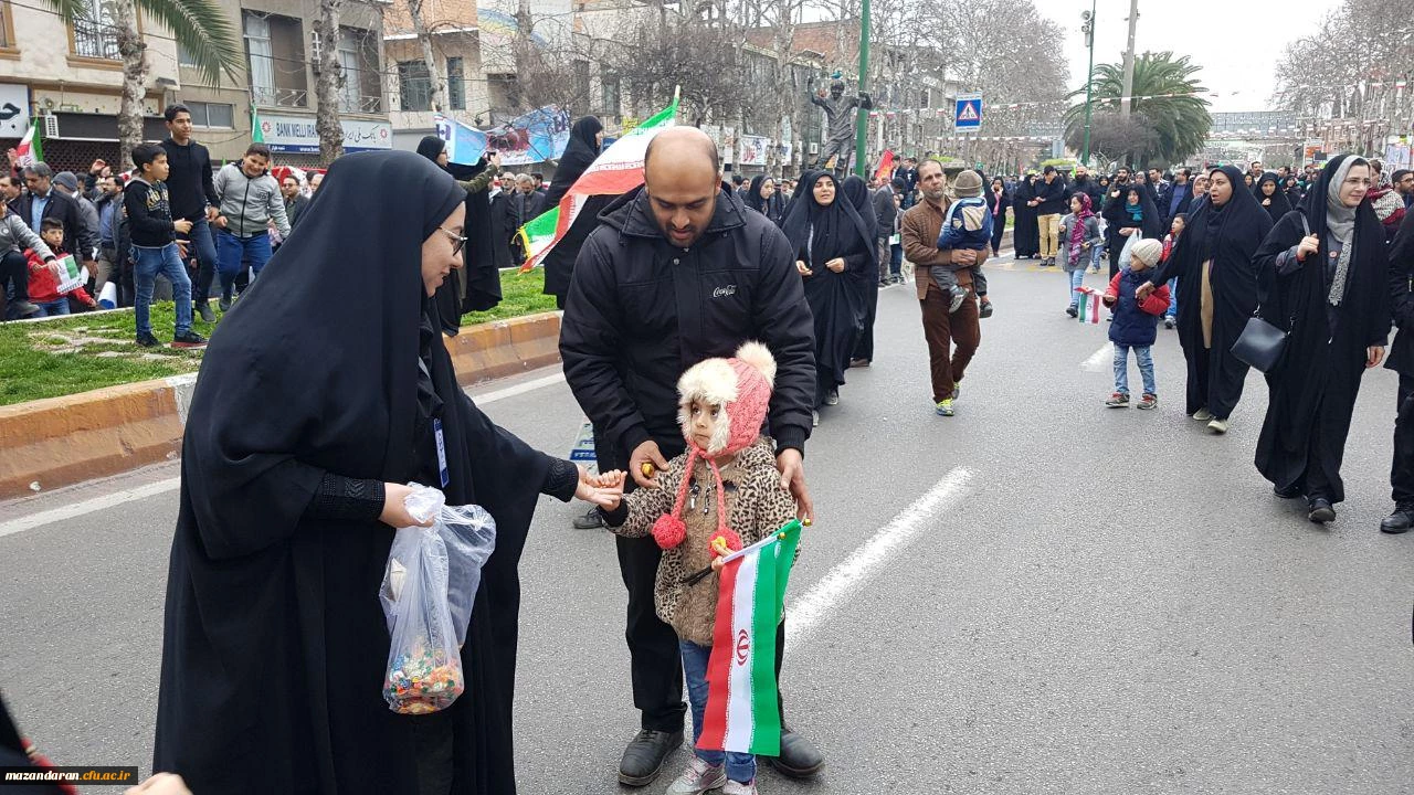 دانشجو معلمان دانشگاه فرهنگیان مازندران در غرفه این دانشگاه در مسیر راهپیمایی ۲۲ بهمن عشق به وطن، پرچم و آرمان ها را تدریس کردند.