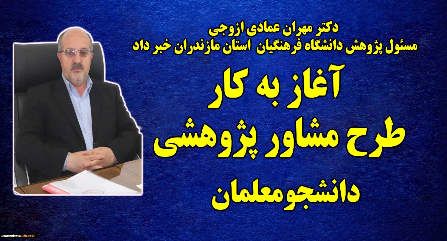 دکتر مهران عمادی کارشناس مسئول پژوهش استان خبر داد: آغاز به کار اساتید مشاور پژوهشی دانشجو معلمان پردیس ها و مراکز آموزش عالی استان