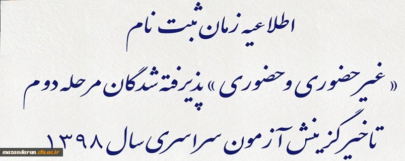 اطلاعیه زمان ثبت نام « غیر حضوری و حضوری » پذیرفته شدگان مرحله دوم تاخیر گزینش آزمون سراسری سال 1398 2