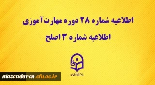 امتیاز دهید : اطلاعیه شماره 28 دوره مهارت آموزی، اطلاعیه شماره 3 اصلح 2 سهشنبه 18 آذر 1399 ساعت 15:28