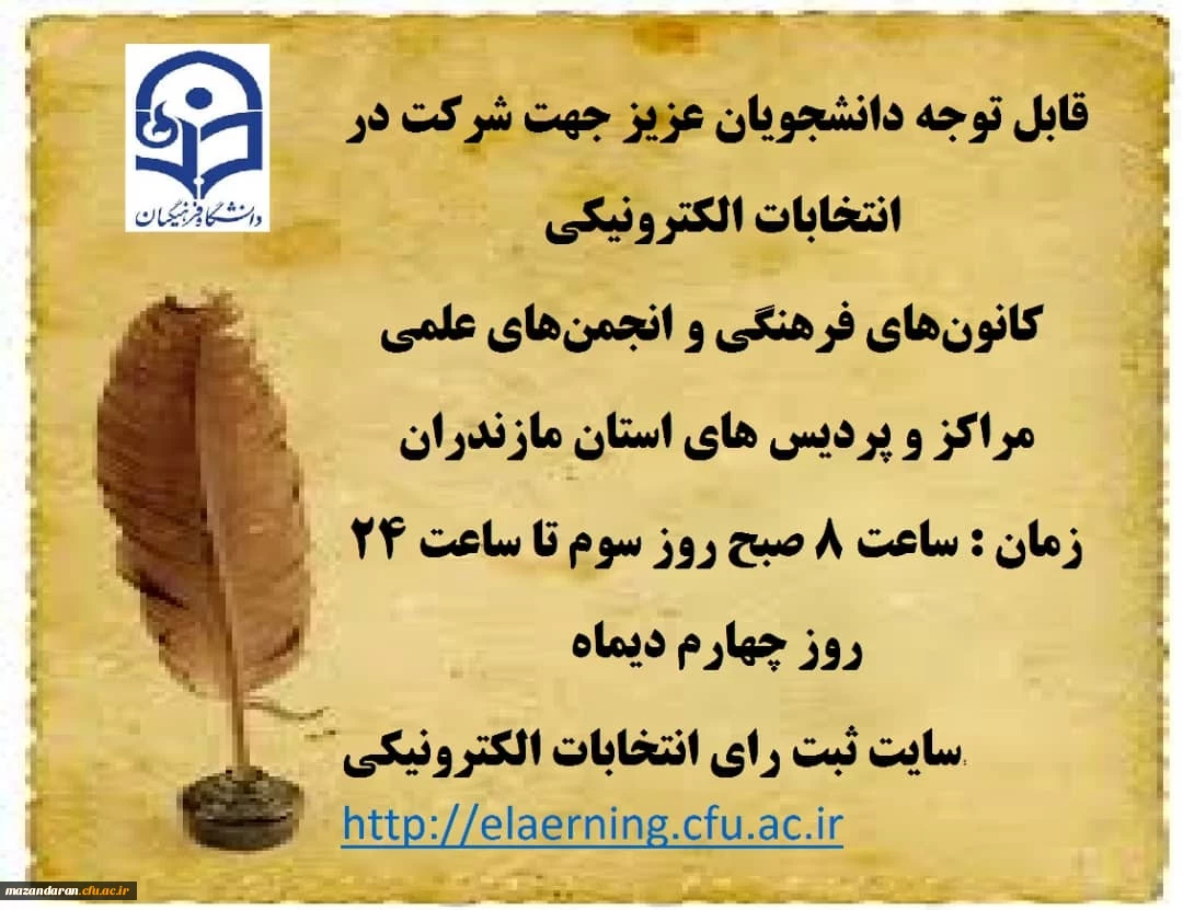 امتیاز دهید : برگزاری انتخابات کانون و انجمن های علمی دانشگاه فرهنگیان استان مازندران 2 پنجشنبه 4 دی 1399 ساعت 21:48