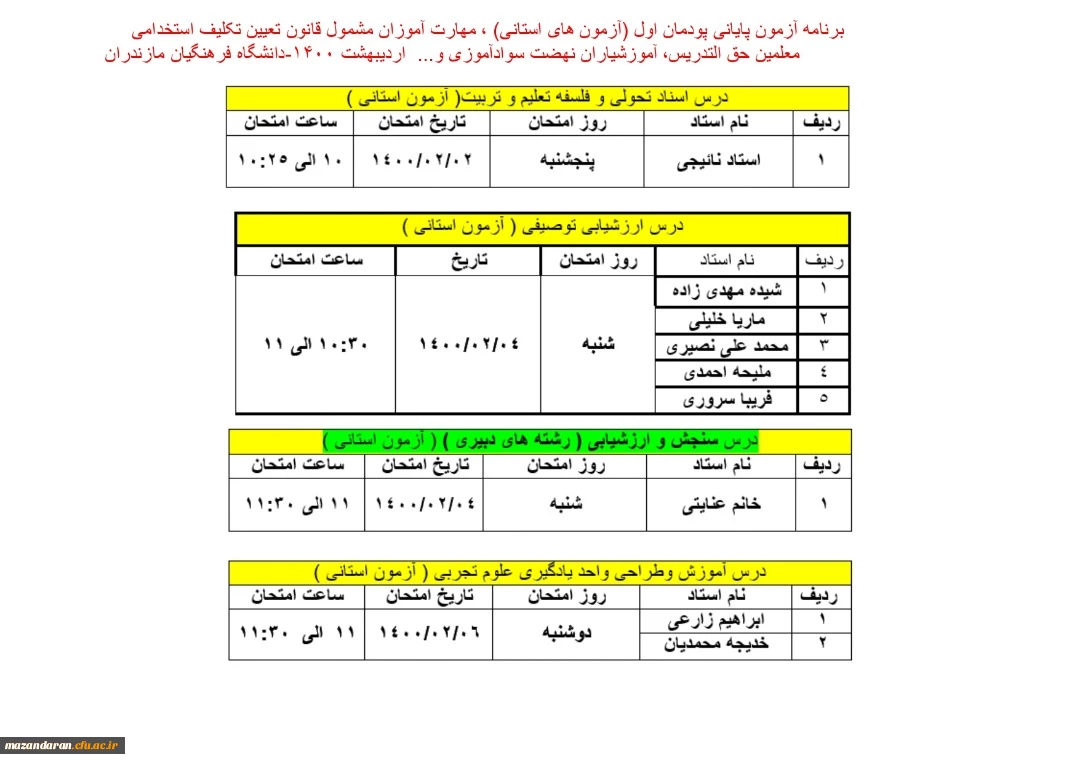 امتیاز دهید : تقویم برگزاری آزمون پایانی پودمان اول دانشگاه فرهنگیان 2 دوشنبه 30 فروردین 1400 ساعت 12:33