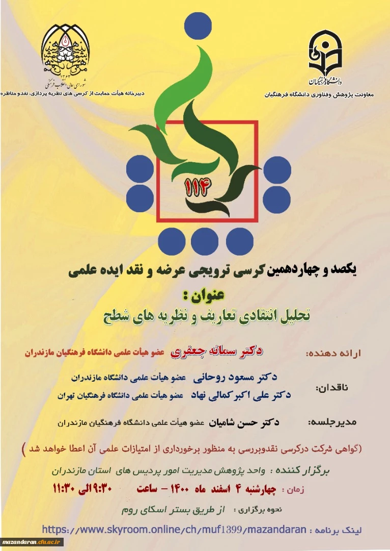 امتیاز دهید : برگزاری کرسی آزاد اندیشی با موضوع تحلیل انتقادی تعاریف و نظریه های شطح 2 چهارشنبه 4 اسفند 1400 ساعت 14:13