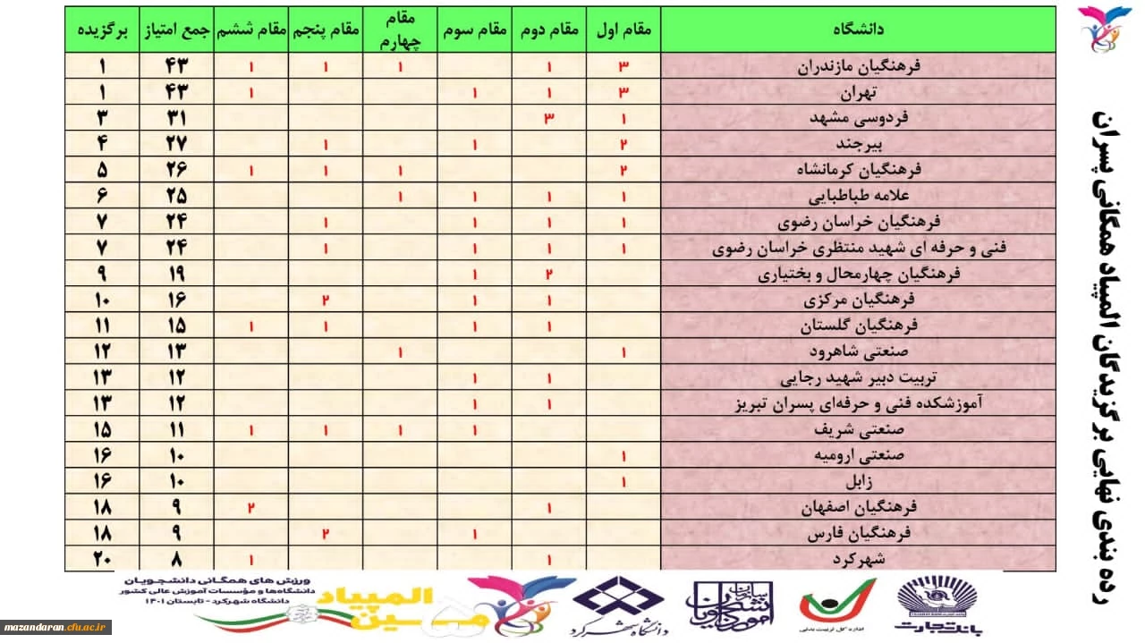 کسب مقام قهرمانی دانشگاه فرهنگیان مازندران در پنجمین المپیاد ورزش های همگانی دانشگاه هاو موسسات آموزش عالی کشور 3