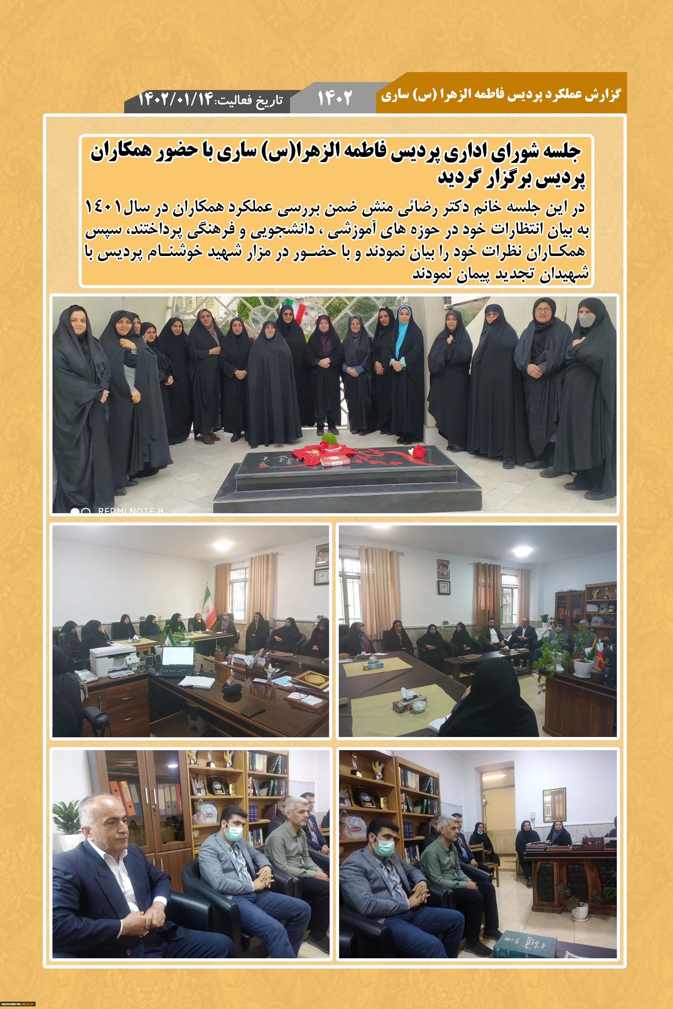 اولین جلسه شورای اداری پردیس فاطمه الزهرا(س) ساری در سال1402 2