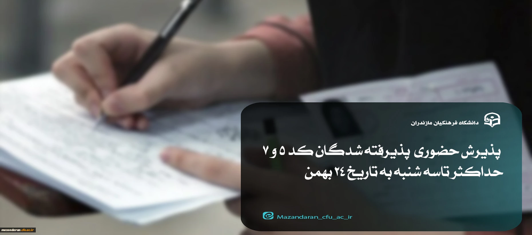 امتیاز دهید : پذیرش حضوری پذیرفته شدگان کد 5 و 7 در مقاطع کارشناسی و کاردانی 2 دوشنبه 23 بهمن 1402 ساعت 8:59