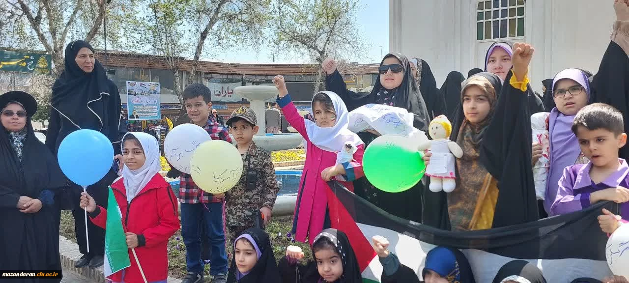 حضور ریاست پردیس فاطمه الزهرا (س) دانشگاه فرهنگیان ساری و کارکنان به همراه خانواده هایشان، همگام با مردم ولایتمدار مازندران در راهپیمایی روز جهانی قدس 10