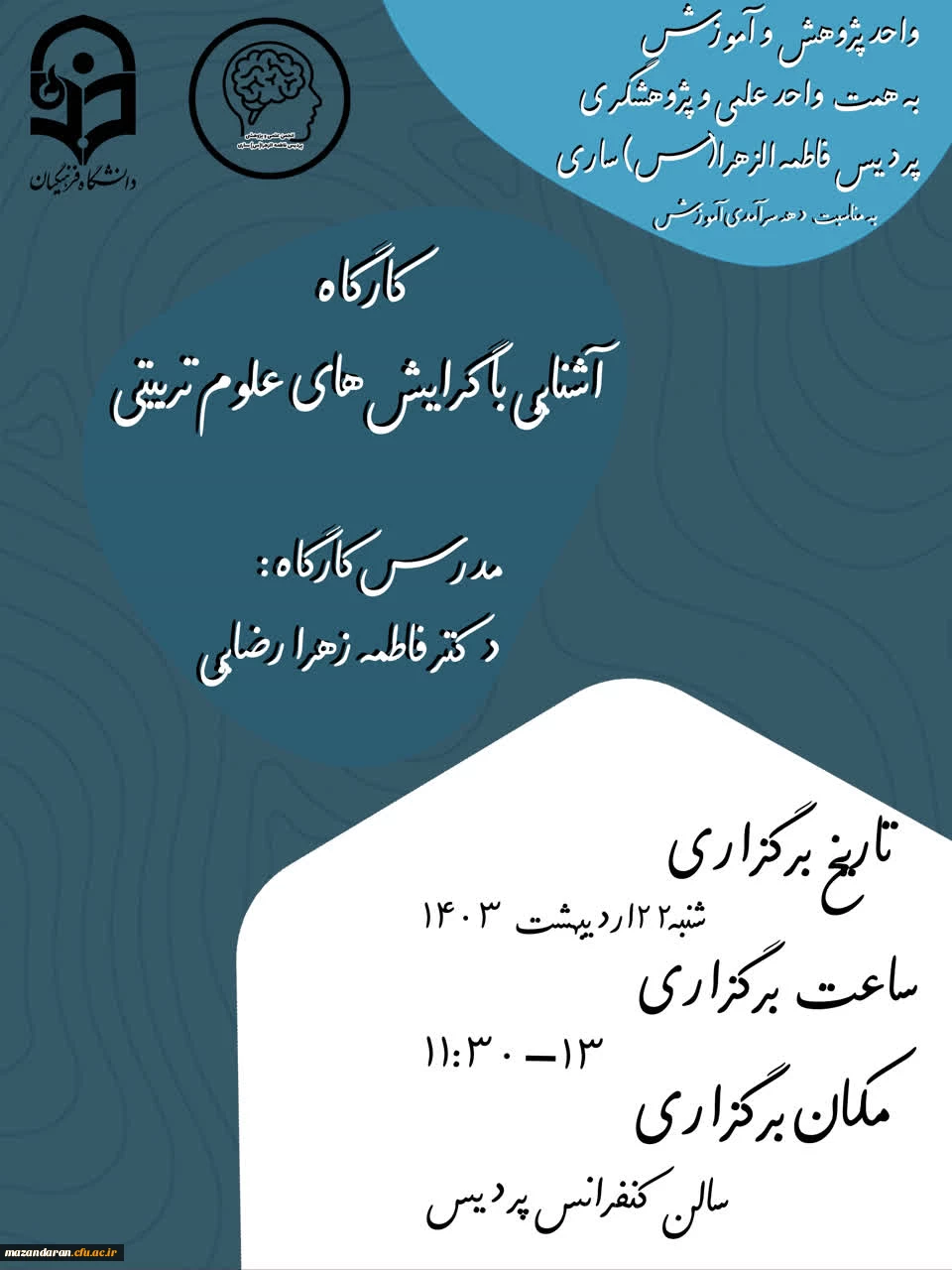 کارگاه آشنایی با گرایش های علوم تربیتی با حضور دانشجو معلمان رشته علوم تربیتی پردیس فاطمه الزهرا س ساری در سالن کنفرانس 5