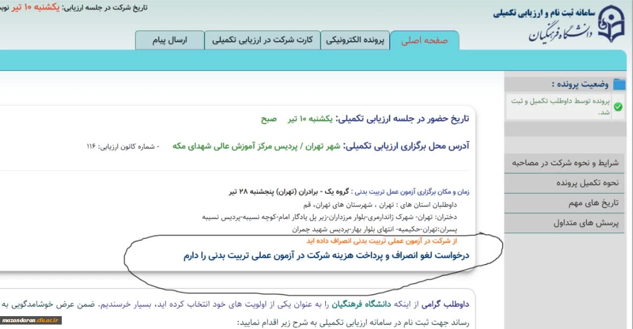 قابلیت لغو انصراف آزمون تربیت بدنی 4