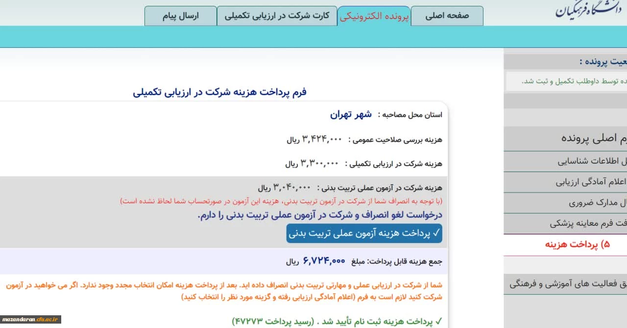 قابلیت لغو انصراف آزمون تربیت بدنی 3